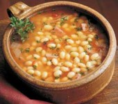 Tip: Αν διαθέτουμε χύτρα βάζουμε όλα τα υλικά στη χύτρα και ρίχνουμε νερό ώστε να είναι επαρκώς καλυμμένα όλα τα υλικά, έτσι μειώνουμε το χρόνο βρασίματος, μόνο που προσθέτουμε το ελαιόλαδο μετά το βράσιμο, λίγη ώρα πριν σερβίρουμε. Συνοδεύεται από ελιές, διάφορα τουρσιά, καπνιστή ρέγγα, ταραμοσαλάτα ή άλλη σαλάτα εποχής.
