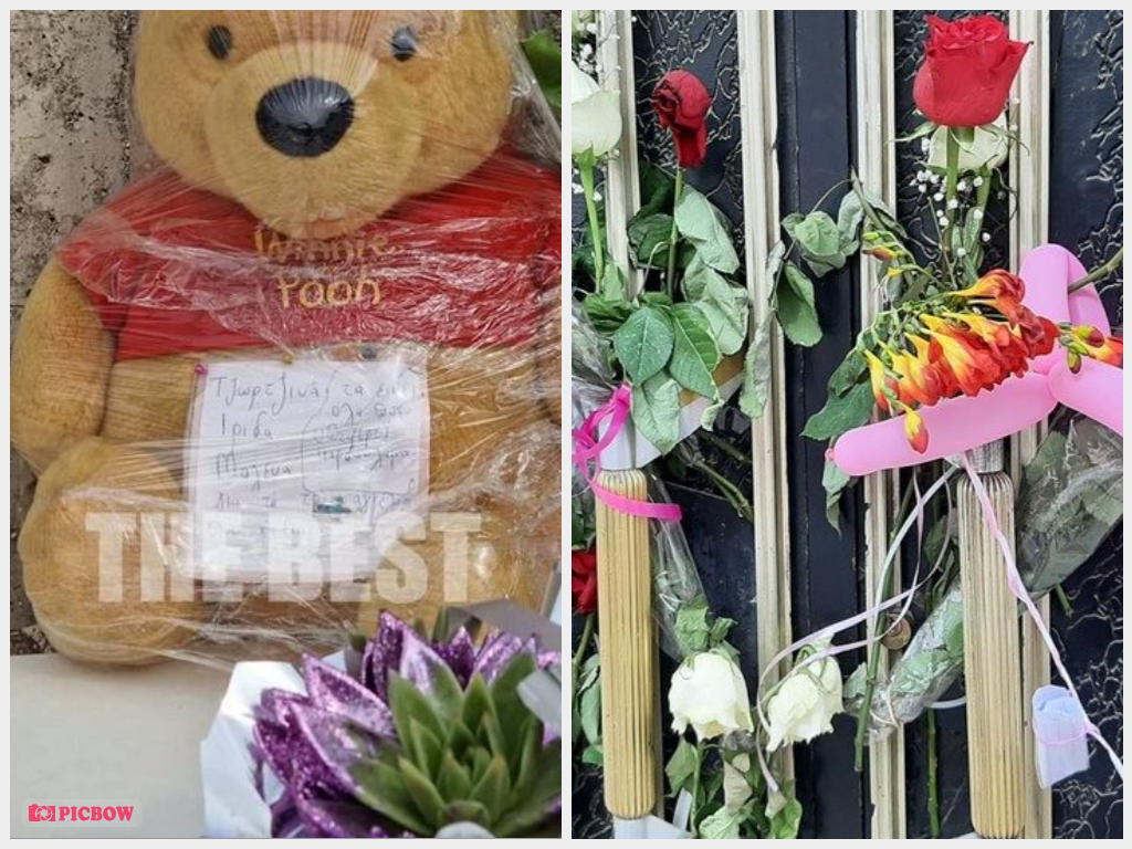 Η εξώπορτα του σπίτι της οδού Μπιζανίου, όπως αποτυπώνεται στις σχετικές εικόνες, έχει γεμίσει από αρκουδάκια, τριαντάφυλλα, καντηλάκια, εικόνες, κεριά, πολύχρωμα μπαλόνια και αφιερώματα, προς τα τρία αγγελούδια.