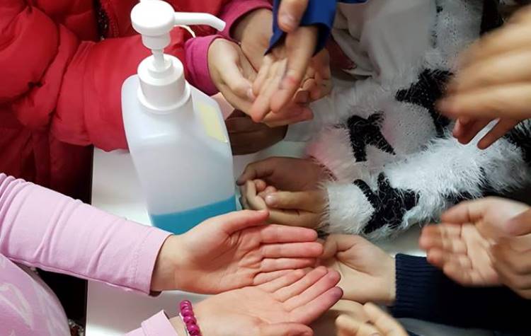 Με μέριμνα του Συλλόγου στο σχολείο υπάρχουν αντισηπτικά, μόνιμα καθ’ όλη τη διάρκεια της σχολικής χρονιάς και όχι μόνο τη δύσκολη περίοδο του χειμώνα.
