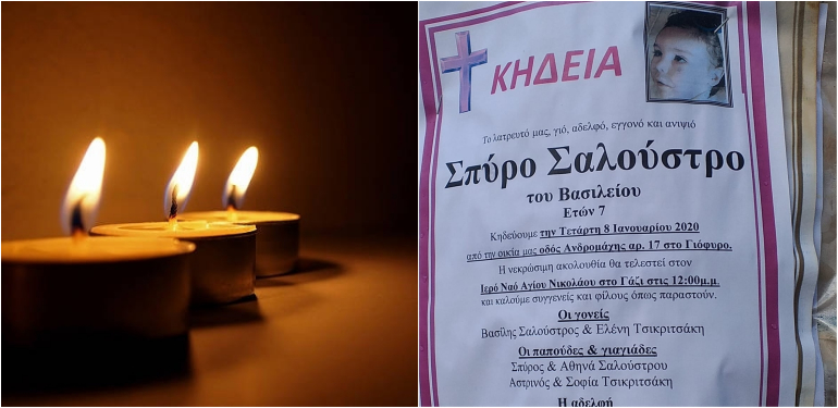 Στο πένθος βυθίστηκαν τα Ανώγεια στο άκουσμα της είδησης ότι ο 7χρονος Σπύρος άφησε την τελευταία του πνοή στο ΠΑΓΝΗ μετά από ανακοπή καρδιάς προχθές το πρωί.