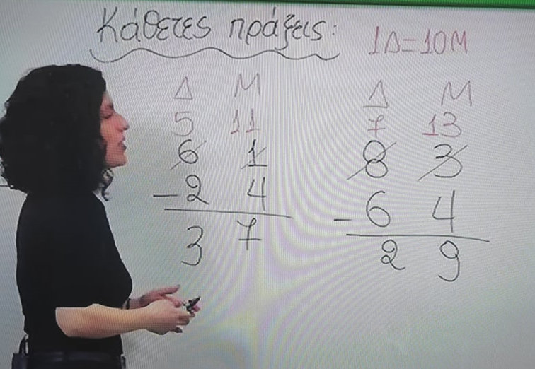 Η συμπαθέστατη δασκάλα, εξηγούσε πολύ αναλυτικά και κατανοητά τις κάθετες πράξεις, όμως στην αφαίρεση των δεκάδων της ξέφυγε ένα μικρό λαθάκι (7-6=2).