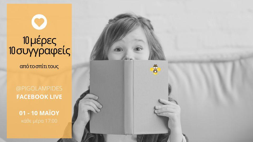 Έτσι, από την Παρασκευή 01 Μαΐου και κάθε μέρα για 10 συνεχόμενες μέρες στις 17:00 στο Πυγολαμπίδες TV (live στη σελίδα στο Facebook) θα εμφανίζεται και από ένας αγαπημένος συγγραφέας που το παιδί μας θα έχει την χαρά να γνωρίσει και να συνομιλήσει!