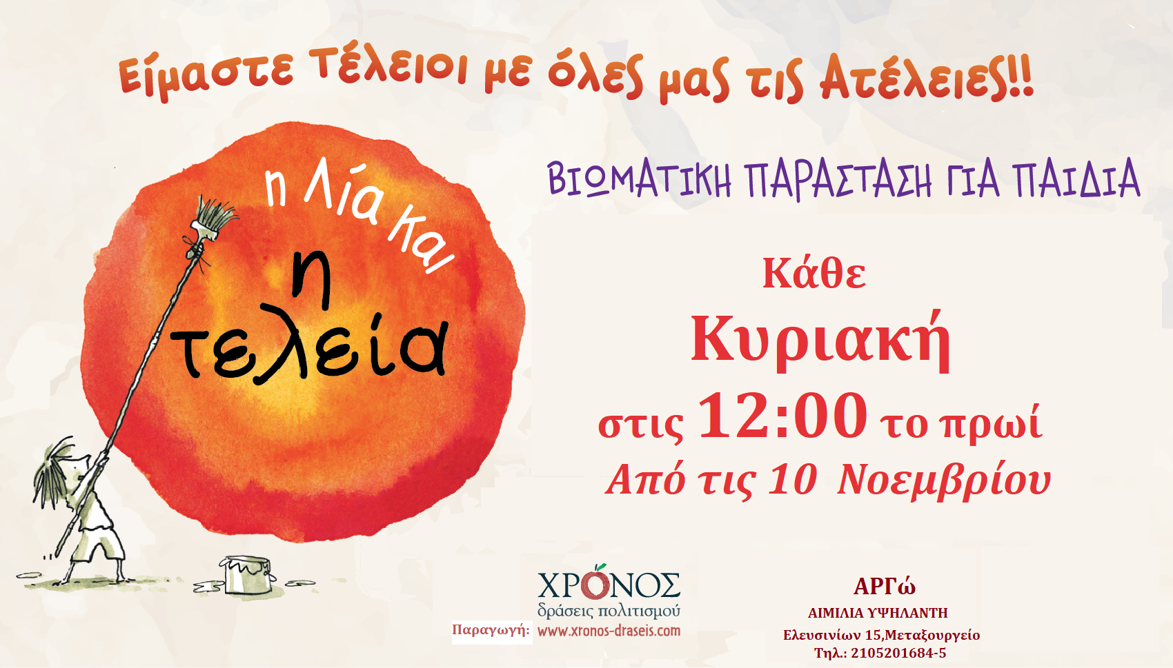Από την Κυριακή 10 Νοεμβρίου στις 12:00 το πρωί στο Θέατρο ΑΡΓώ