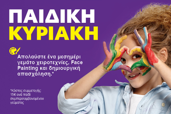 Η είσοδος για κάθε παιδί είναι 15€ συμπεριλαμβανομένου του γεύματος.