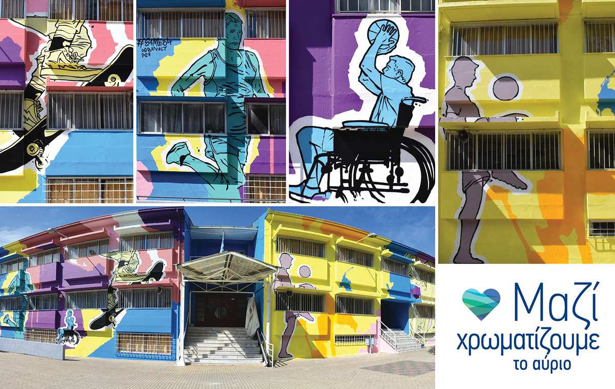 Η δράση ξεκίνησε στις 8 Απριλίου και την υλοποίηση ανέλαβε ο artist της καλλιτεχνικής ομάδας UrbanAct, Same84. Το θέμα που επιλέχθηκε για την τοιχογραφία ήταν ο αθλητισμός, καθώς η ευγενής άμιλλα, ο υγιής συναγωνισμός και τα ιδεώδη του ολυμπισμού, θα αποτελούν έμπνευση και σημαντικά αντίβαρα στα κοινωνικά πρότυπα που προβάλλονται καθημερινά και οδηγούν τα παιδιά στην αποξένωση.