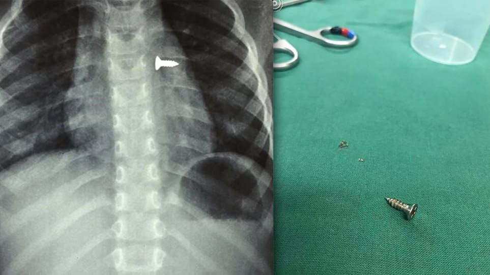 Μία βίδα κατάπιε ένα κοριτσάκι στην Κρήτη, με συνέπεια να καταλήξει στον αριστερό του πνεύμονα..