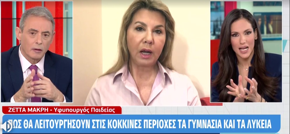 Η υφυπουργός Παιδείας, Ζέττα Μακρή, σε σημερινή τηλεοπτική της συνέντευξη στο MEGA αναφέρθηκε στα τρέχοντα εκπαιδευτικά ζητήματα εν αναμονή της επιστροφής των μαθητών της Δευτεροβάθμιας Εκπαίδευσης στα σχολεία την προσεχή Δευτέρα 1η Φεβρουαρίου.