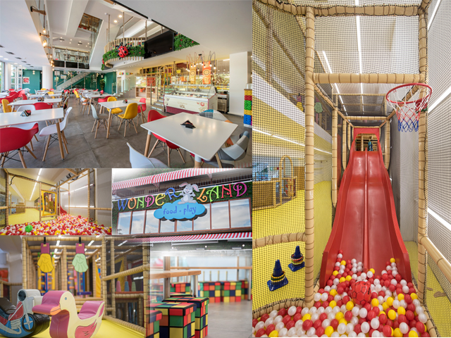 Μπορεί η αρχική εντύπωση που δίνει στον επισκέπτη να είναι, ότι πρόκειται για έναν μεγάλο παιδότοπο, όμως η Wonderland είναι πολλά περισσότερα: Στο ισόγειό της μπορείτε να πραγματοποιήσετε ένα μικρό ή μεγάλο παιδικό πάρτι, κατά τη διάρκεια του οποίου τα παιδιά θα απολαμβάνουν ξένοιαστο παιχνίδι στον δαιδαλώδη λαβύρινθο, ενώ οι μεγάλοι θα απολαμβάνουν τον καφέ ή το σνακ τους, νιώθοντας ασφάλεια αφού το πολυπληθές προσωπικό έχει πάντα το άγρυπνο βλέμμα τους στραμμένο στα παιδιά. Αν, μάλιστα, οι καλεσμένοι σας υπερβαίνουν σε αριθμό τα τραπεζοκαθίσματα του ισογείου, υπάρχουν αρκετά ακόμα στον πρώτο όροφο, όπου η παιχνιδοκατασκευή συνεχίζει.