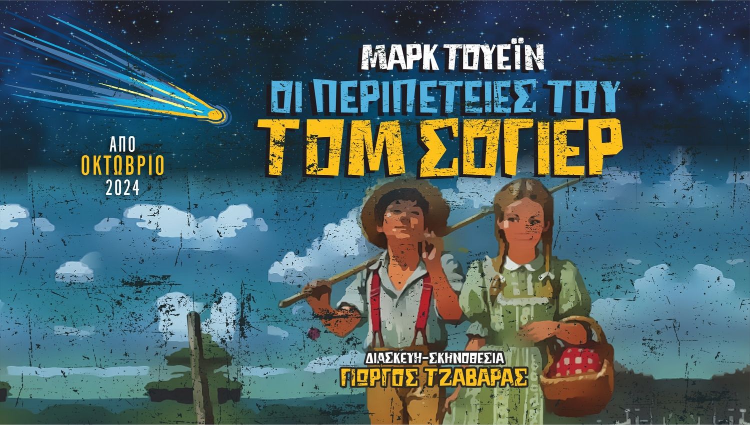 Μετά την επιτυχία της παράστασης «Κοντά στις Ράγιες» που παρακολούθησαν πάνω από 30.000 θεατές, μια ολοκαίνουρια θεατρική εμπειρία για το παιδικό και οικογενειακό κοινό ετοιμάζεται στο φιλόξενο θέατρο Άλφα-Ληναίος-Φωτίου. Από τον ερχόμενο Οκτώβριο το κλασικό αριστούργημα του Μαρκ Τουέιν «Οι περιπέτειες του Τομ Σόγιερ» θα ζωντανέψει στη σκηνή σε θεατρική διασκευή Γιώργου Τζαβάρα και Γιώργου Ζαφειρόπουλου και σκηνοθεσία Γιώργου Τζαβάρα, με έναν ταλαντούχο θίασο ηθοποιών και μουσικών.