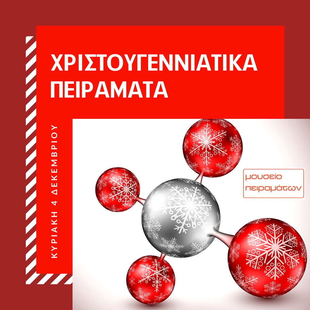Την χειμωνιάτικη Κυριακή 4 Δεκεμβρίου στο Μουσείο Πειραμάτων υποδεχόμαστε το πιο εορταστικό και επιστημονικό πρόγραμμα! Καθώς η αγαπημένη γιορτή μικρών και μεγάλων πλησιάζει, τα συνηθισμένα αντικείμενα των γιορτών γίνονται υλικά για…πειράματα. Ψυχαγωγία και μάθηση συνδυάζονται αρμονικά, πάντα με την υπογραφή του Μουσείου Πειραμάτων.