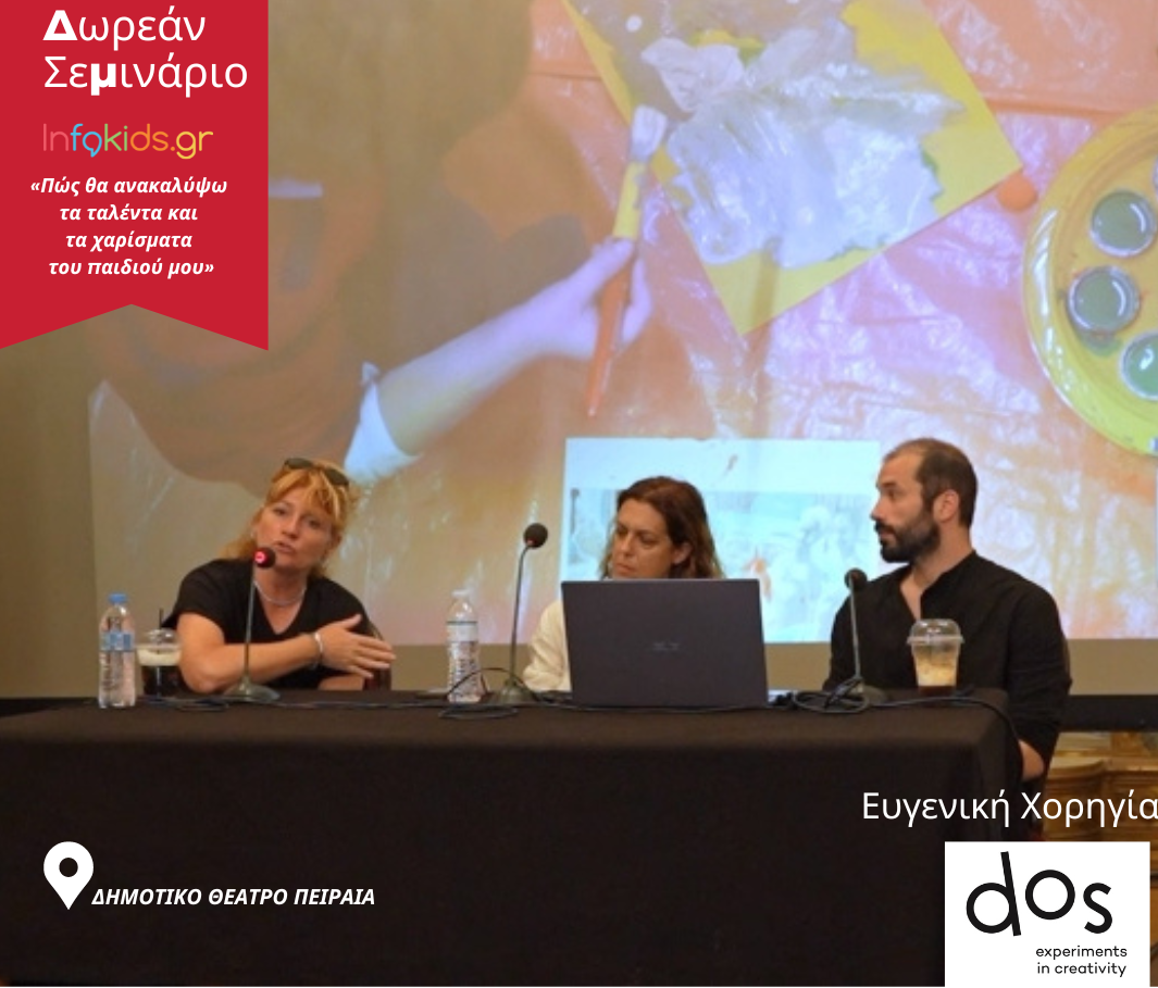 Το τελευταίο σεμινάριο της σχολής γονέων του Ιnfokids.gr για τη φετινή σεζόν, «Πώς θα ανακαλύψω τα ταλέντα και τα χαρίσματα του παιδιού μου» πραγματοποιήθηκε με μεγάλη επιτυχία το Σάββατο 27 Μαΐου στο Φουαγιέ του Δημοτικού Θεάτρου Πειραιά με τη χορηγία του Χώρου Δημιουργικής Απασχόλησης Παιδιών “dos, experiments in creativity“.