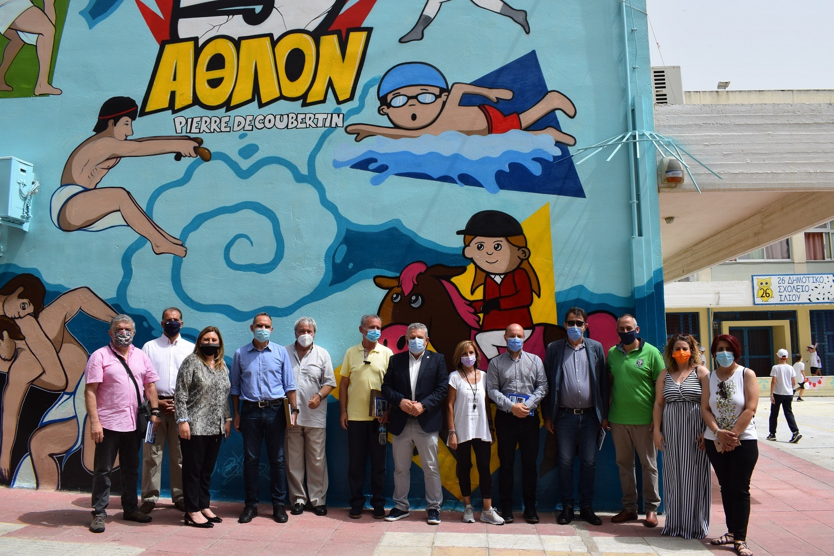 Η μαθητική και εκπαιδευτική κοινότητα του 26ου Δημοτικού Σχολείου Ιλίου καμαρώνει ιδιαιτέρως για την μεγάλων διαστάσεων τοιχογραφία με παραστάσεις από το αρχαίο και μοντέρνο πένταθλο που κοσμεί το τελευταίο διάστημα το σχολικό προαύλιο.