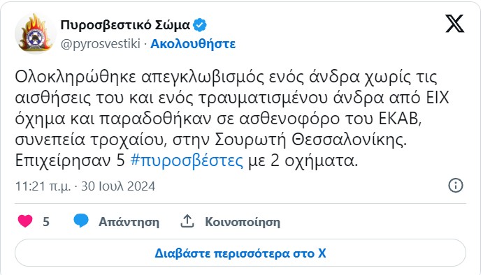 Τραγωδία σημειώθηκε στη Θεσσαλονίκη με τον 18χρονο που τραυματίστηκε σοβαρά σε τροχαίο στην περιοχή της Σουρωτής να αφήνει την τελευταία του πνοή λίγο αργότερα, στο Ιπποκράτειο νοσοκομείο. Σε πολύ σοβαρή κατάσταση νοσηλεύεται στο ίδιο νοσοκομείο ο πατέρας του.