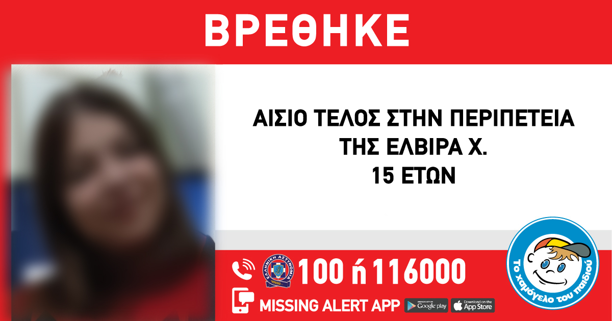 Η περιπέτεια της Ελβίρας Χ., 15 ετών, έληξε σήμερα και είναι καλά στην υγεία της.