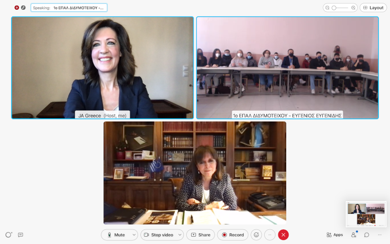 «Μαθαίνω ότι οι μαθητές και οι μαθήτριες έχουν σημαντικές επιδόσεις στο πρόγραμμα “Εικονική Επιχείρηση” του Junior Achievement Greece, του πολύ σημαντικού αυτού προγράμματος που τους δείχνει τον δρόμο της επιχειρηματικότητας, ενώ παράλληλα μέσα από αυτή τη δράση αποκτούν δεξιότητες πολύ χρήσιμες για τη ζωή τους. Δημιουργούν “επιχειρήσεις”, αξιοποιώντας τις σύγχρονες τεχνολογίες, τις αρχές της κυκλικής οικονομίας και του σεβασμού στο περιβάλλον. Όλα αυτά που γίνονται είναι πολύ σημαντικά και ειδικά το 1ο ΕΠΑΛ Διδυμοτείχου είχε μεγάλες επιτυχίες στο παρελθόν και χαίρομαι πολύ γι’ αυτό», είπε η Πρόεδρος, απευθυνόμενη στα παιδιά, που φρόντισαν να την ενημερώσουν με κάθε λεπτομέρεια για τα σχέδιά τους.